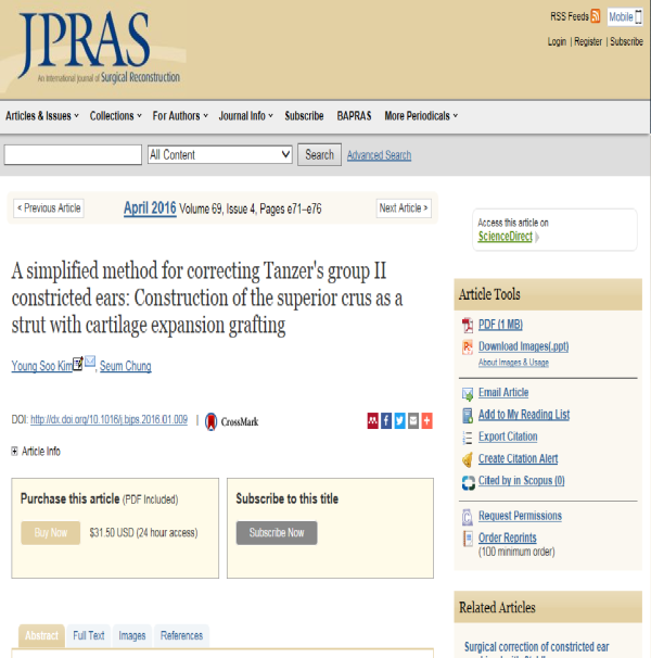 수축귀의 교정에 관한 논문이 영국에서 발행되는 성형외과학회지에 실렸다.